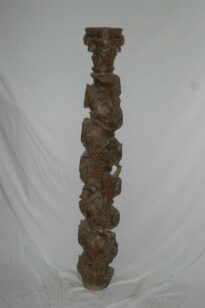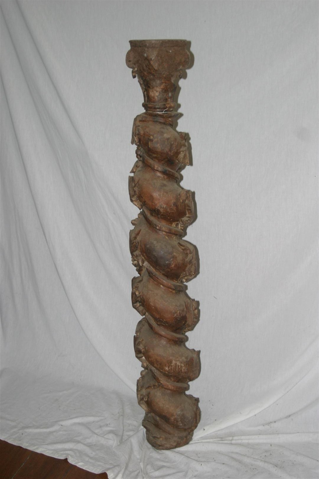 Fragmento de retábulo, identificado como coluna salomônica ou torsa, confeccionado em madeira (jacarandá?) entalhada. Apresenta capitel coríntio composto por folhas de acanto encimadas por volutas com extremidades voltadas para baixo, sobre friso em meia-cana. Fuste envolto por friso representando caule e ornado por folhas de parreiras e cachos de uvas.